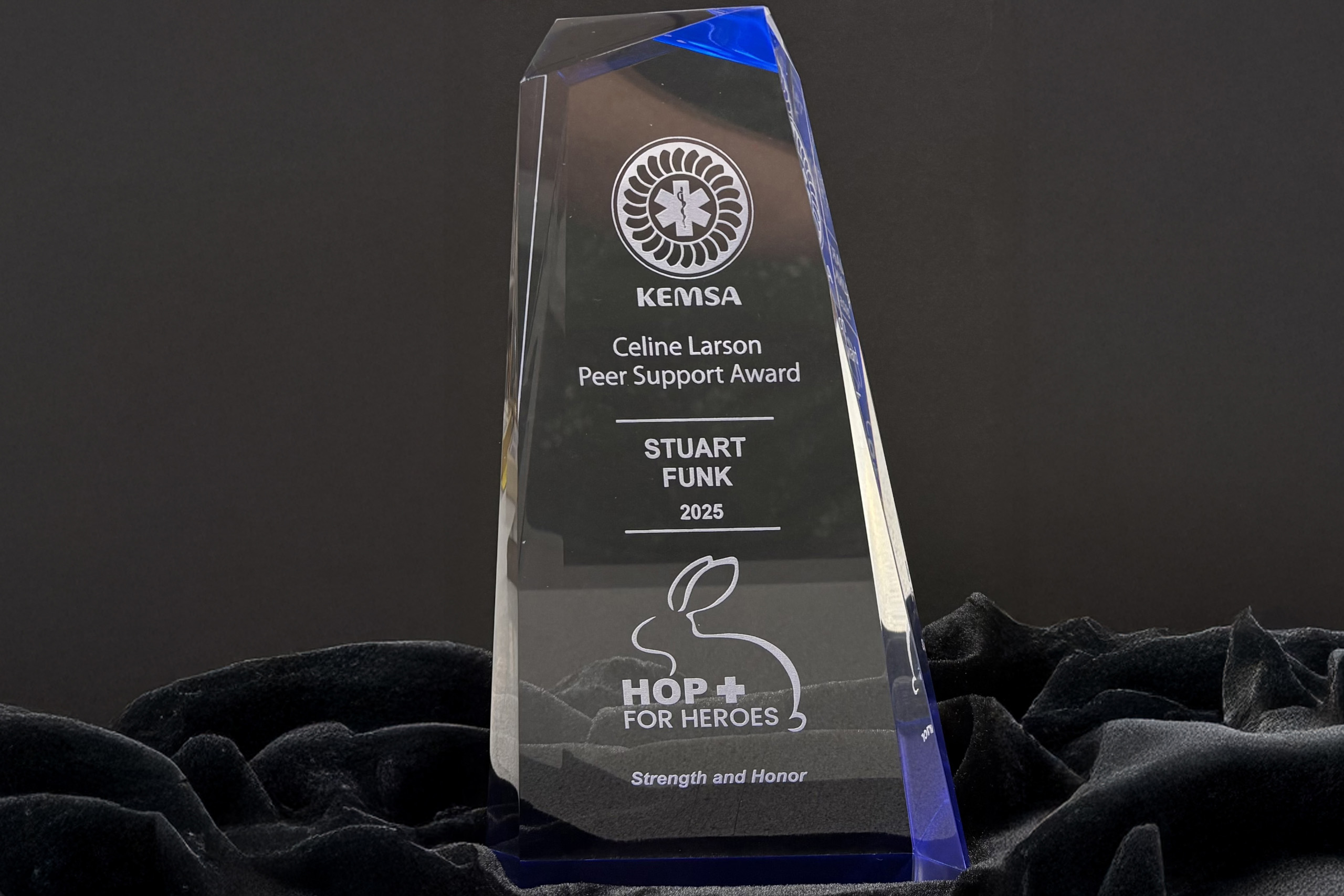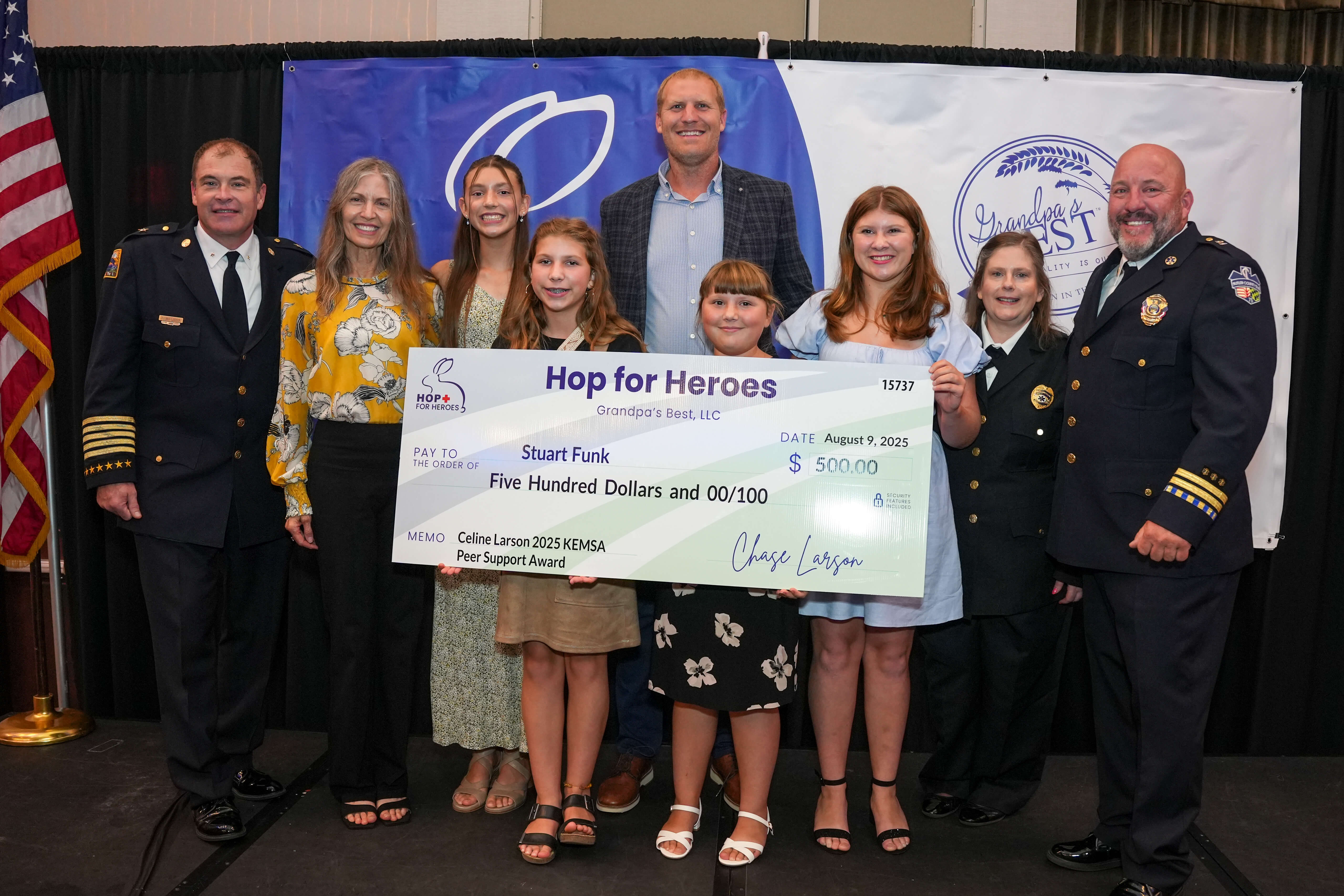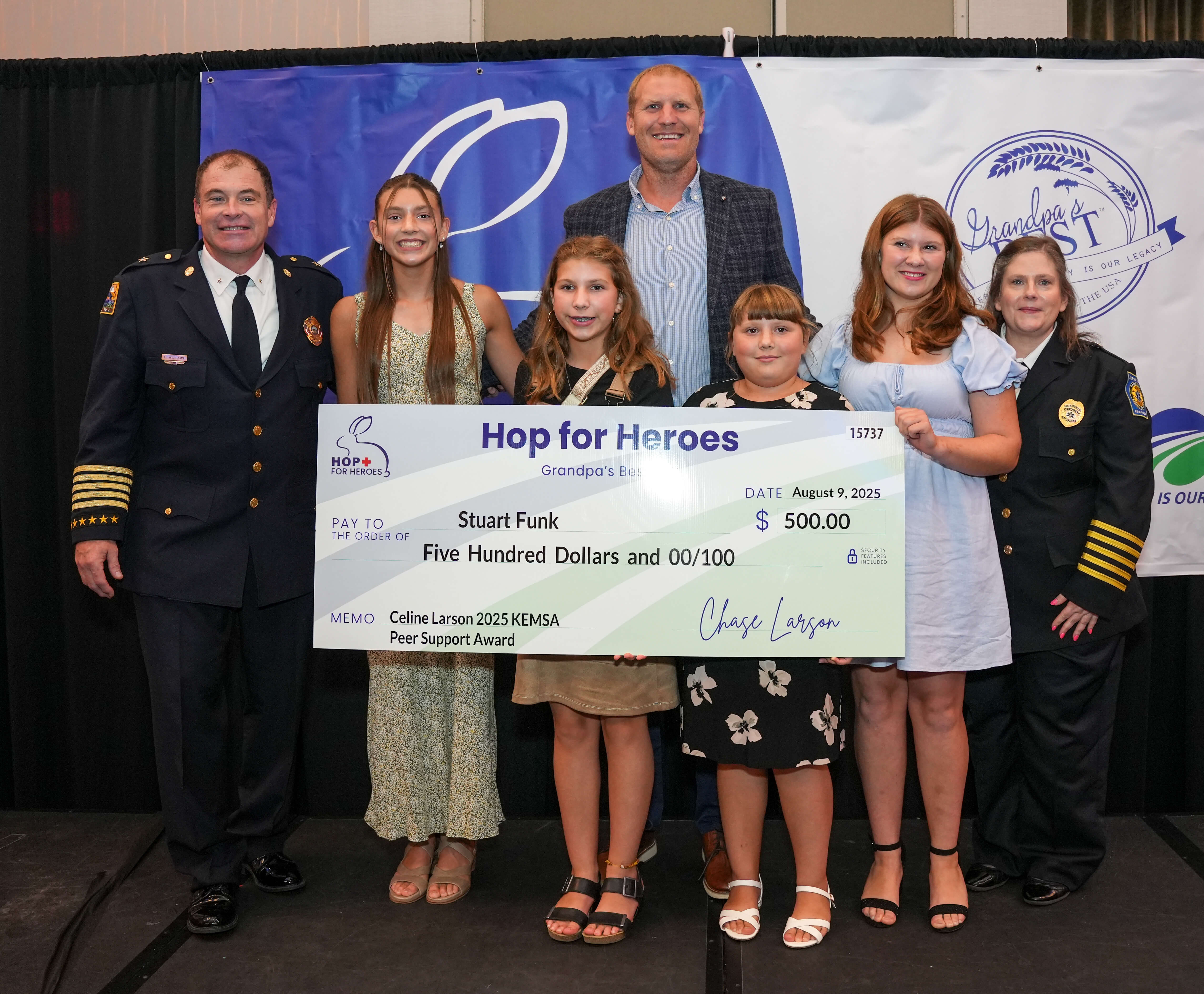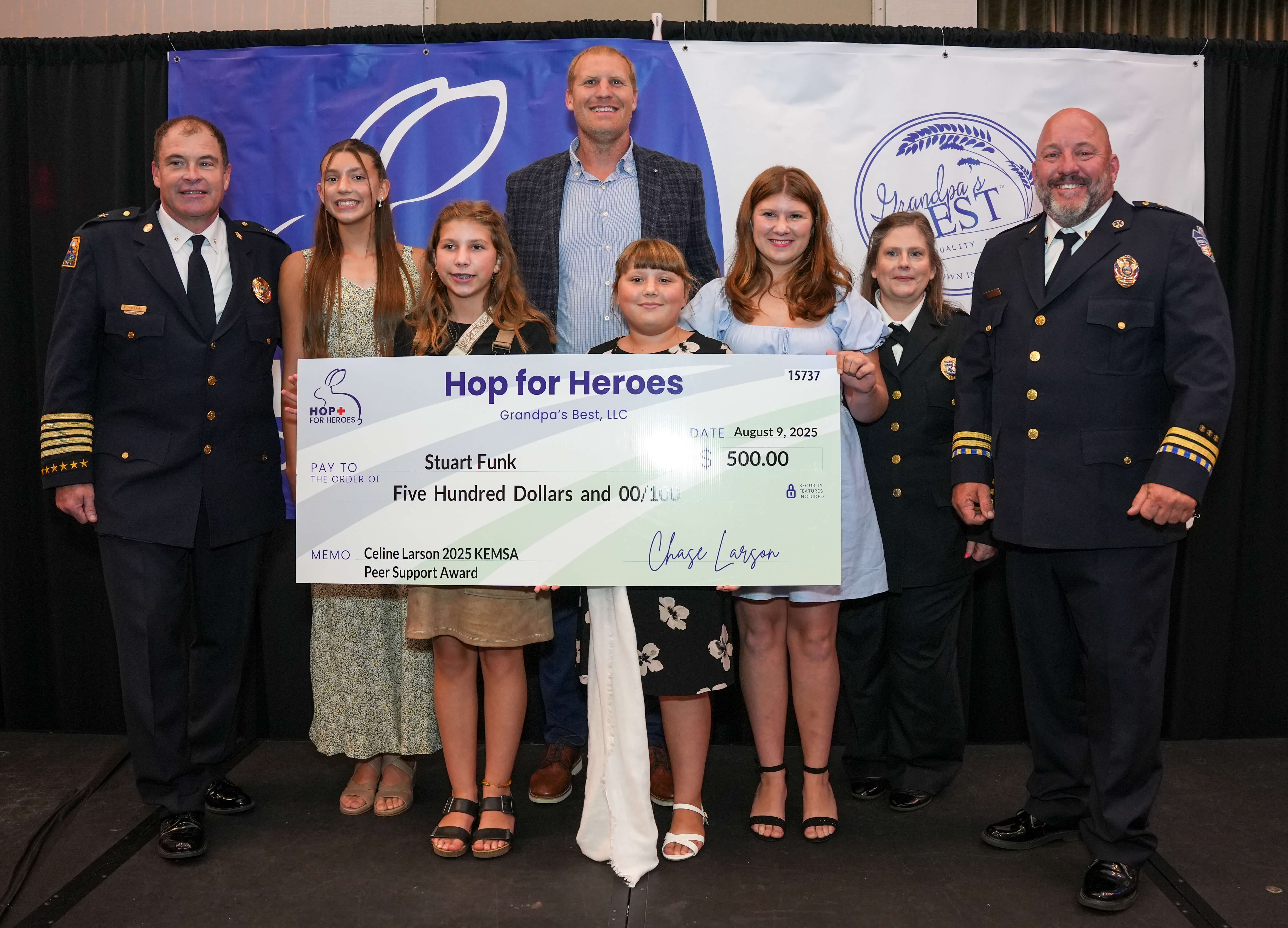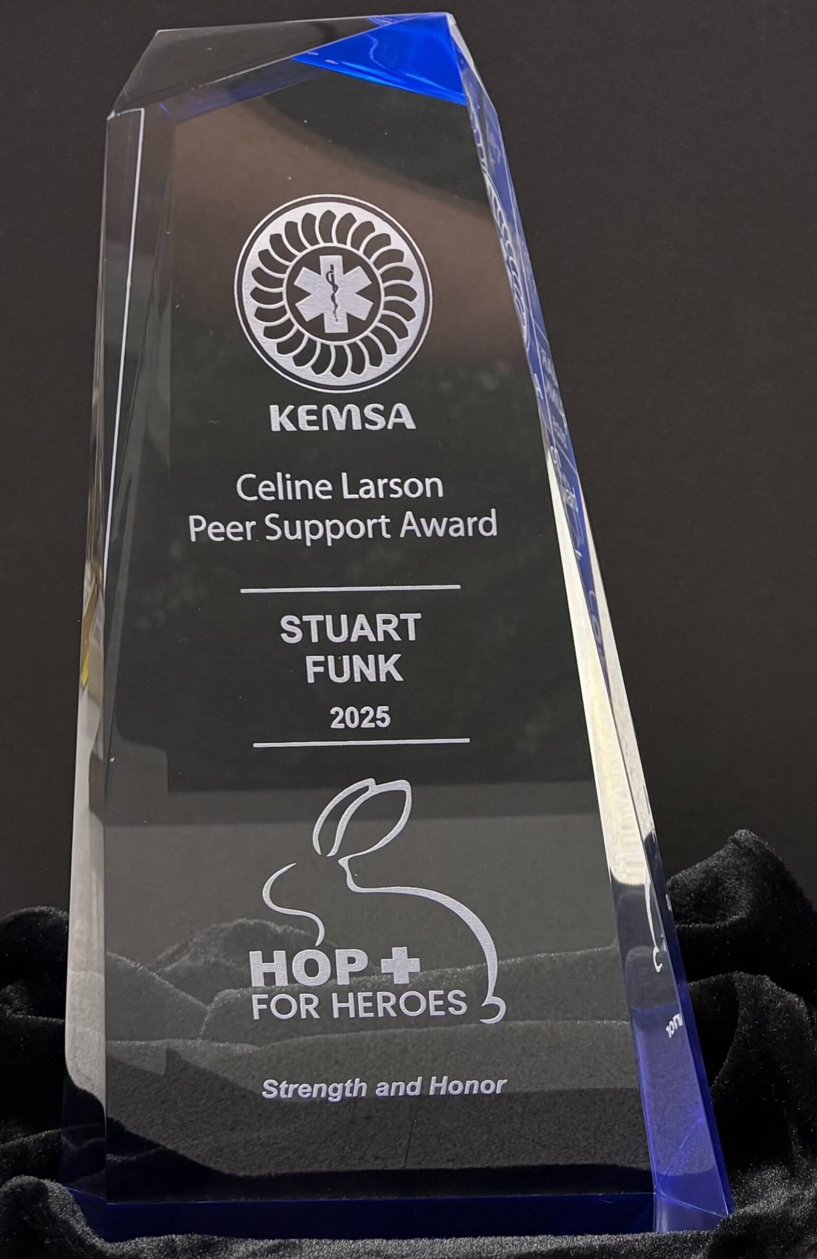 On August 9th, KEMSA (Kansas Emergency Medical Services Association) hosted an award ceremony to honor the remarkable contributions of Emergency Medical Services (EMS) professionals. The Celine Larson Peer Support Award was created to recognize individuals or teams whose service exceeds what is normally expected, providing the utmost peer support, exemplifying Strength and Honor.